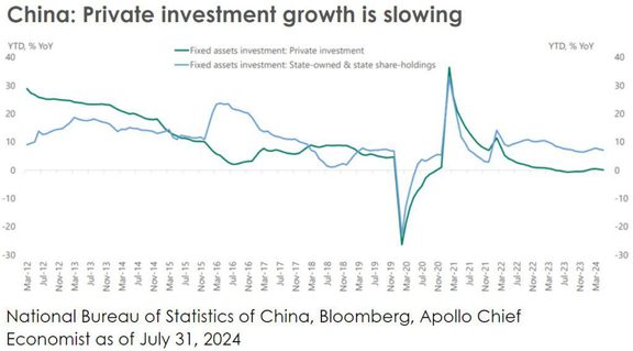 National Bureau of Statistics of China, Bloomberg, Apollo Chief Economist as of July 31, 2024