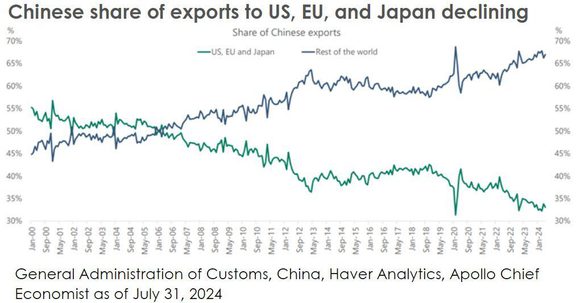 General Administration of Customs, China, Haver Analytics, Apollo Chief Economist as of July 31, 2024
